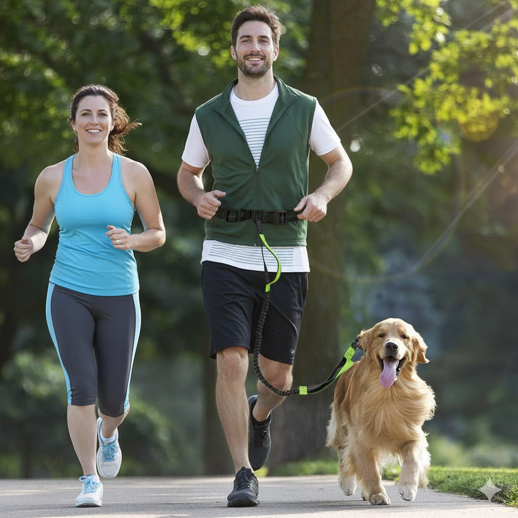 Diseñada para quienes disfrutan correr con su perro, esta correa distribuye la fuerza de los tirones gracias a su diseño bungee, reduciendo la tensión en la cintura y haciendo el paseo más cómodo para ambos. El cinturón ajustable se adapta a diferentes tallas y permite moverte con los brazos libres. Los detalles reflectantes aumentan la visibilidad en condiciones de poca luz, mientras que el mosquetón robusto asegura una conexión firme al collar o al arnés.