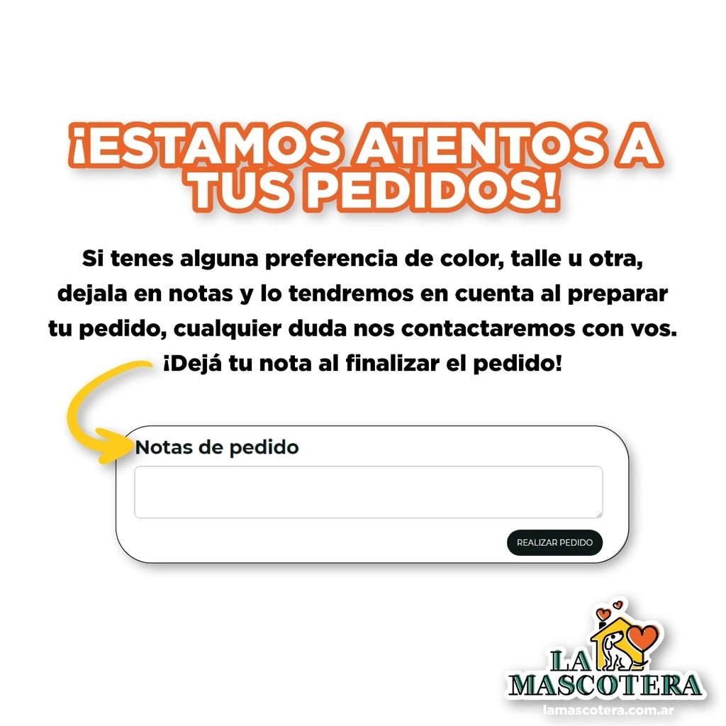 Podes dejarnos en notas, cualquier información que quieras darnos como horario especial de entrega, colores preferidos o lo que consideres necesario para tu pedido